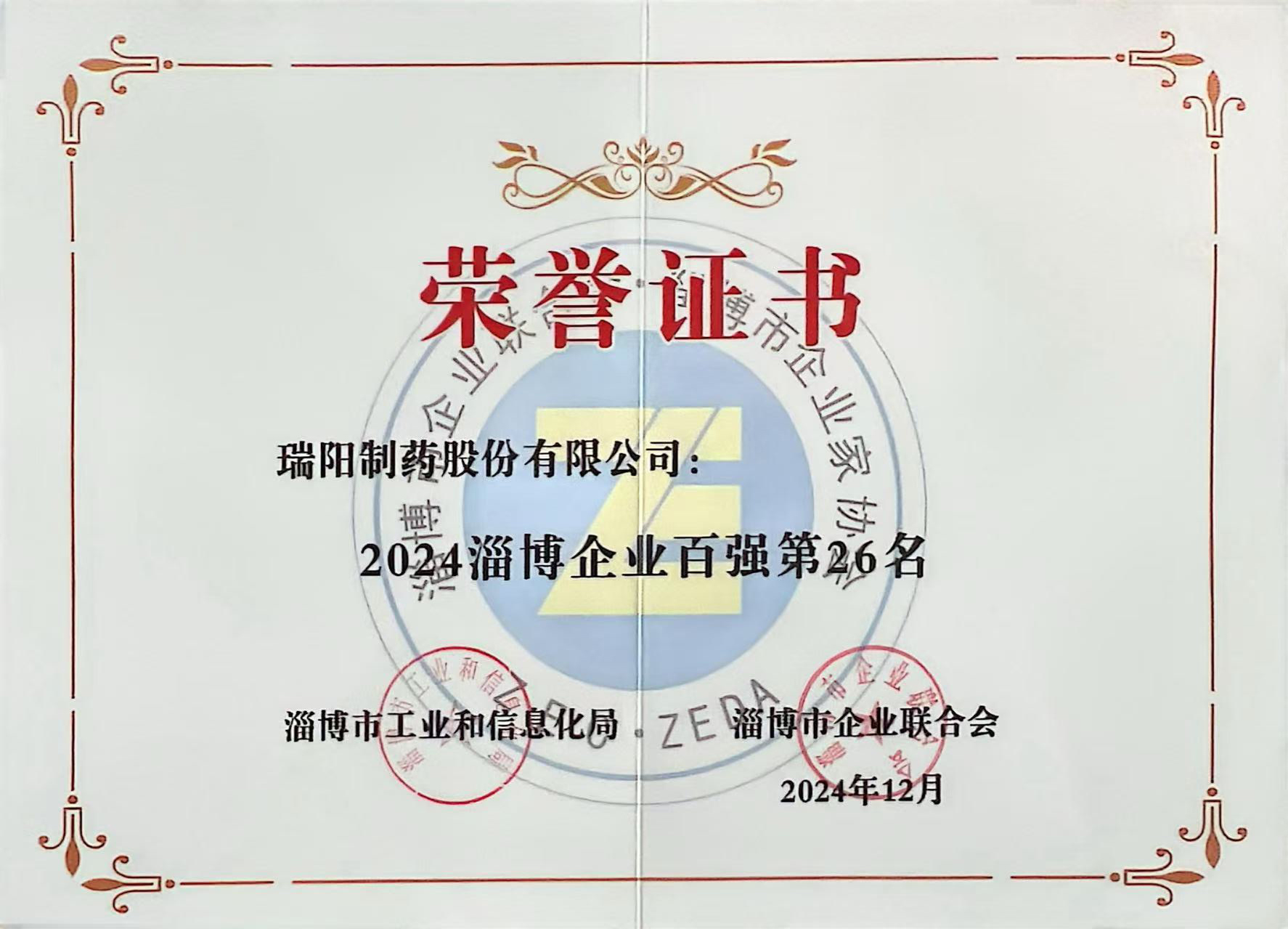 公司榮獲“淄博企業(yè)100強(qiáng)”和“淄博制造業(yè)企業(yè)100強(qiáng)”